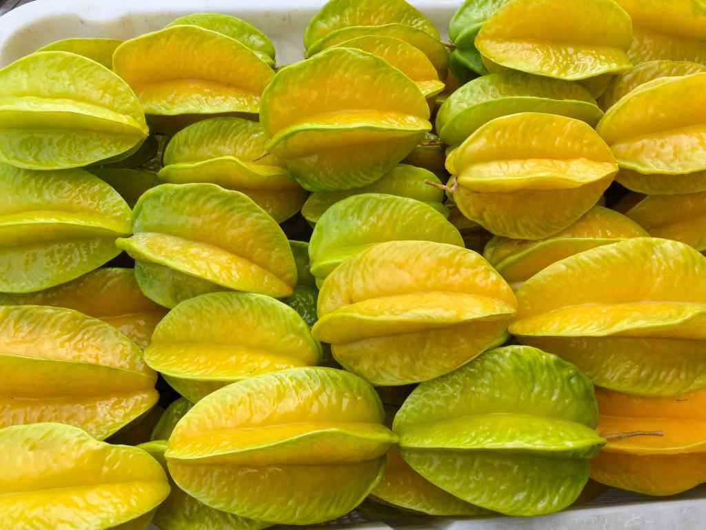 元江县水果市场成堆摆放的杨桃。(元江县融媒体中心供图)